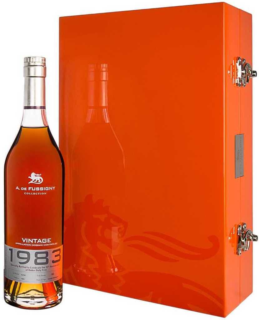 A. de Fussigny, "Millesime", 1983 — винтажный коньяк, изготовленный из лучших виноградных спиртов хозяйства урожая 1983 года, выращенных в регионе Гранд Шампань. Коньяк, возраст самого старого спирта которого равен 35 годам, был выпущен специальным изданием к 35 годовщине Дьюти Фри Дубая. Розлив коньяка с бочковой крепостью 42.6% состоялся в июне 2018 г.