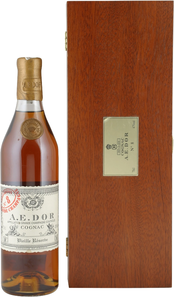 А.Е.Дор № 8 выдержан в сухом погребе одного из благороднейших регионов — Гранд Шампань, в традиционных бочках из дуба Лимузен, возраст продукта — 45 лет. А.Е. Дор № 8 — настоящий старый коньяк коллекции Дома А.Е. Дор, с необычной крепостью 47%, гармоничный, с абсолютно неагрессивными спиртами и необычайно приятным ароматом — превосходный подарок для истинного ценителя. Изысканность и класс А.Е. Дор № 8 подчеркивает подарочная коробка из натурального дерева.