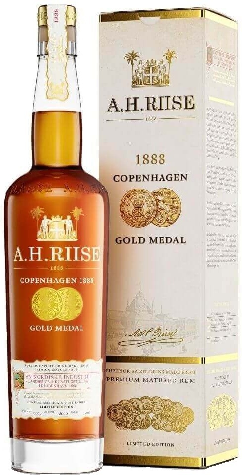 В 1888 году в Копенгагене, когда в городе проходила Великая выставка достижений промышленности, сельского хозяйства и искусства 5 северных стран, царила отчетливо интернациональная обстановка. Выставка открылась 18 мая и охватила территорию, в настоящее время занимаемую Ратушной площадью, Тиволи и Конфедерацией датской промышленности. Винокурня A.H. Riise также участвовала в Великой выставке в Копенгагене, ее ром был выставлен в павильоне Вест-Индии и награжден золотой медалью. В честь этого особого и знаменательного события был выпущен редкий ром "A.H. Riise" 1888 Copenhagen Gold Medal. Входящие в купаж дистилляты имеют возраст от 7 до 21 года. Процесс старения проходит в отборных бочках на островах в Западной Индии и Центральной Америке.