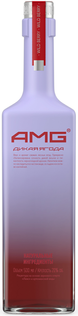 АМГ, Дикая Ягода — сладкая настойка с неповторимым ягодным вкусом, в производстве которой используются спирт класса "Люкс", очищенная артезианская вода, черника, арония, вишня, коньячный дистиллят. Идеальный баланс сладости и свежей кислинки создает очень питкий и приятный на вкус напиток. Настойку можно употреблять как в чистом виде со льдом, так и использовать в качестве основы для создания разнообразных коктейлей.