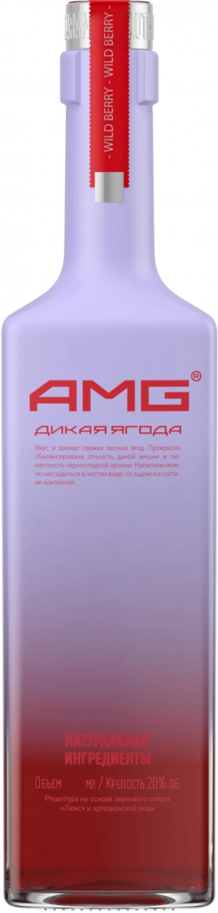 АМГ, Дикая Ягода — сладкая настойка с неповторимым ягодным вкусом, в производстве которой используются спирт класса "Люкс", очищенная артезианская вода, черника, арония, вишня, коньячный дистиллят. Идеальный баланс сладости и свежей кислинки создает очень питкий и приятный на вкус напиток. Настойку можно употреблять как в чистом виде со льдом, так и использовать в качестве основы для создания разнообразных коктейлей.