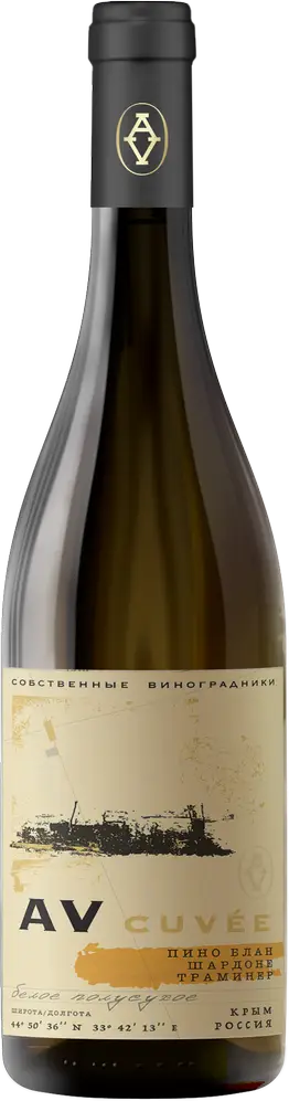 AV cuvee, Пино Блан-Шардоне-Траминер — округлое, мягкое белое полусухое вино, гармонично сочетающее в себе сладковатые тона спелых фруктов, мягкую кислотность и шелковистую текстуру. Длительная ферментация протекает при контролируемой температуре в современных бродильных чанах из нержавеющей стали. Когда сусло достигает нужого уровня содержания остаточного сахара, брожение прерывают понижением температуры. Каждый сорт выдерживается отдельно при пониженной температуре 8 °С, купажируется и бутилируется.