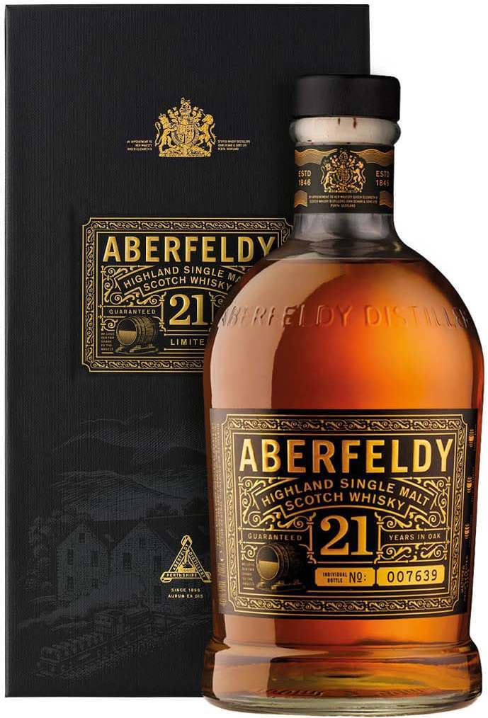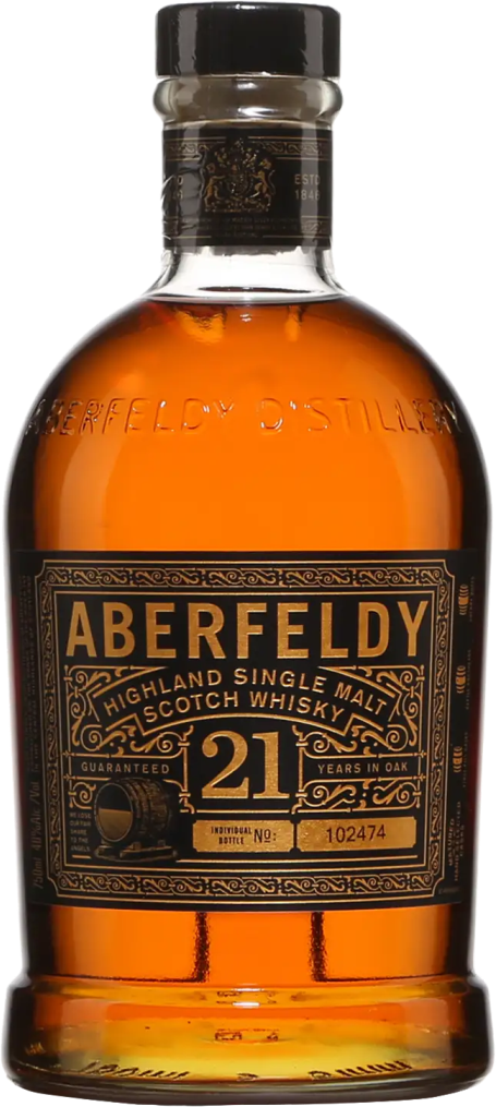 Aberfeldy, 21 Years Old — это полностью натуральный продукт, полученный из отборного ячменя, природной воды и дрожжей. Считается, что вода является одним из важных ингредиентов при создании виски, обеспечивающим превосходное качество. На Aberfeldy Distillery используют воду расположенного вблизи ручья Pitilie Burn, славящегося своими полезными свойствами. Опыт и мастерство специалистов компании превращают бленд даров природы в настоящий шедевр — виски Aberfeldy. На протяжении 21 года выдержанный в дубовых бочках напиток приобретает благородные оттенки верескового меда и характерную мягкость. По мнению, некоторых экспертов виски класса «premium malt», каким является Aberfeldy 21 Years Old, — это просто «удовольствие в стакане».
