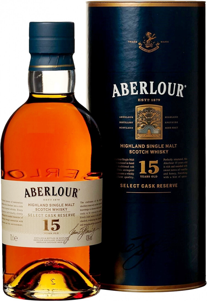 Виски "Aberlour 15 Years Old" выдерживается в течение 15 лет, сначала в дубовых бочках из-под хереса и бурбона, а затем в новых бочках из-под хереса олоросо, чтобы развить свой щедрый и богатый вкус. Виски был награжден Золотой медалью на International Wine & Spirit Competition 1996, Золотой медалью на Concours Mondial Bruxelles 1999, серебряной медалью на International Spirit Challenge 1999, бронзовой медалью на International Wine & Spirit Competition 1998.