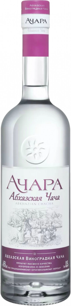Ачара, Абхазская Чача — традиционная высококачественная абхазская чача, напиток, являющийся частью самобытной абхазской культуры. Чача производится путем дистилляции ферментированных виноградных выжимок и вина. Напиток обладает деликатным цветочным ароматом с нотками свежего винограда и мягким, приятным вкусом. Тщательно отобранное сырье и строгий контроль производства позволяет создавать продукт высокого качества. Согласно рецепту, чача "Ачара" не проходит выдержку в бочках.