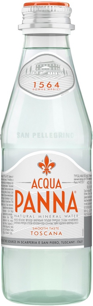 Одна из самых легких слабоминерализованных минеральных вод в мире — натуральная вода "Acqua Panna" — происходит из подземного источника с Апеннин, пробиваясь сквозь слои горных пород, тем самым естественным образом очищаясь и насыщаясь минералами. Вода обладает прекрасно сбалансированным, свежим, негазированным вкусом, способным усиливать даже самые тонкие вкусы, что делает ее превосходным дополнением к кулинарным изыскам. Воде присуще низкое содержание натрия и наличие таких минеральных веществ, как кальций, сульфаты и бикарбонаты.