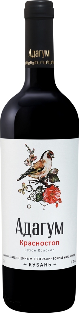 Адагум, Красностоп — красное сухое вино с привлекательным ароматом и сочным вкусом с доминирующими тонами лесных ягод. Виноград сорта Красностоп Золотовский для изготовления вина выращивается в Краснодарском крае, в защищенном географическом указании Кубань, что гарантирует качество винограда и строго контролируемые правила изготовления вина. "Адагум" Красностоп рекомендуется подавать к мясу, приготовленному на гриле, блюдам с мягкой текстурой, пицце и твердым сырам.