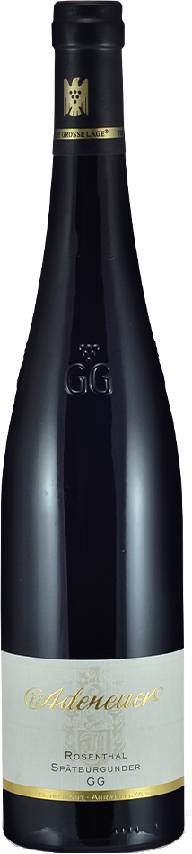 Adeneuer, Rosenthal, GG Spatburgunder, Ahr — утонченное красное сухое вино, изготовленное из винограда сорта Шпетбургундер, известного также как Пино Нуар, который выращивается на органическом винограднике "Розенталь", на одном из самых крутых склонов Ара. Почва здесь, помимо шифера, также содержит большую долю лессового суглинка и глины. В результате влияния геоклиматических условий вино получает характерную фруктовую полноту. Имея всего 560 гектаров виноградников, Ар является одним из самых маленьких винодельческих регионов Германии.