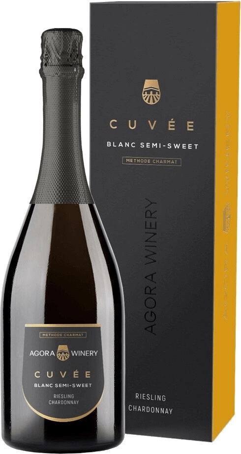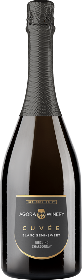 Agora Cuvee, Riesling-Chardonnay — нежное белое полусладкое игристое вино из винограда сортов Рислинг и Шардоне, который выращивается в уникальном микроклимате Крымского полуострова. Мягкий средиземноморский климат и минеральные почвы как нельзя лучше подходят для выращивания винограда, способного конкурировать с мировыми эталонами. Все этапы производства вина проходят под контролем главного винодела Агора Груп, от сбора урожая до бутилирования. После сбора урожая виноград тщательно сортируется, только лучшие ягоды отбираются для дальнейшей винификации. Игристое вино производится методом Шарма, в соответствии с которым вторичное брожение проводится в новейших акратофорах со специально отобранными штаммами французских дрожжей. Температура брожения строго контролируется и поддерживается на максимально низких значениях. Выдержка на осадке длится 2-6 месяцев. В результате получается очень изящное игристое вино с нежной, сблансированной сладостью во вкусе (40-55 г/л).