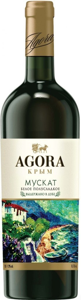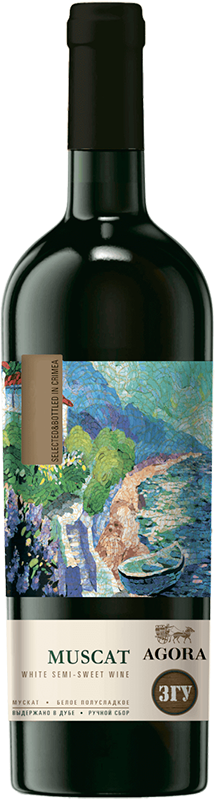 Agora, Muskat — белое полусладкое вино, созданное из мускатных сортов винограда, которые произрастают на виноградниках компании под жарким крымским солнцем. После сбора урожая, который проводится только по достижению ягод полной зрелости, плоды подвергаются традиционной винификации с последующей выдержкой в дубовых бочках в течение полугода.