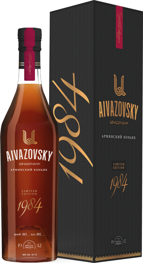 Aivazovsky, Limited Edition, 1984 — лимитированный выпуск роскошного коньяка урожая 1984 года. Коньяк назван в честь художника-мариниста Ивана Константиновича Айвазовского. Для изготовления коньяка используют виноград автохтонных сортов, прошедший строгий отбор. После ферментации виноградного сусла производится двойная дистилляция с тщательным выделением самой чистой фракции коньячных спиртов — средней ("сердце"). Выдержка коньячных дистиллятов в бочках из французского и кавказского дуба занимает не менее 35 лет, с дополнительной выдержкой в течение минимум 3-х лет после купажирования. Непосредственно перед розливом дистиллят фильтруется и разводится специально подготовленной родниковой водой до 40% алкоголя. Лимитированный винтажный коньяк выпускается в элегантной подарочной коробке, что делает его отличным подарком.
