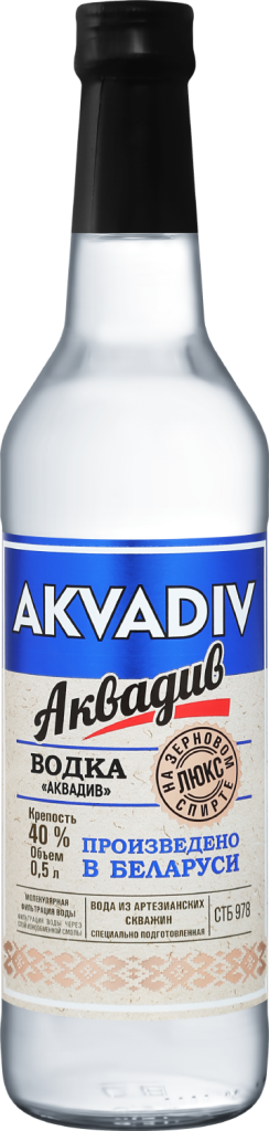 "Akvadiv" — классическая водка из эконом линейки с отличным соотношением "цена-качество". Для ее изготовления используют высококачественный зерновой спирт класса "Люкс" и специальную питьевую воду из артезианской скважины, которая обрабатывается кремнем. Дополнительная очистка активным углем и фильтрация на серебряных фильтрэлементах позволяет создать водку с приятным, мягким и чистым вкусом. Водку рекомендуется подавать в чистом виде, в качестве аперитива, а также в паре с сытными блюдами и закусками, соленьями и маринадами.