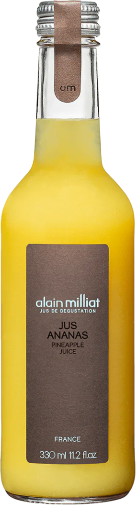 Alain Milliat, Jus Ananas — натуральный ананасовый сок, обладающий не только тонким ароматом и деликатным освежающим вкусом, но и множеством полезных свойств. В его производстве используются только натуральные ингредиенты, он не содержит красителей или ароматизаторов. Сок является источником витаминов группы B, С, А, PP, E, фосфора, калия, магния, кальция, железа и цинка, а также единственным известным источником бромелайна, фермента с противовоспалительными свойствами. Поэтому ананасовый сок не только вкусный, но и очень полезный для полноценной работы организма.