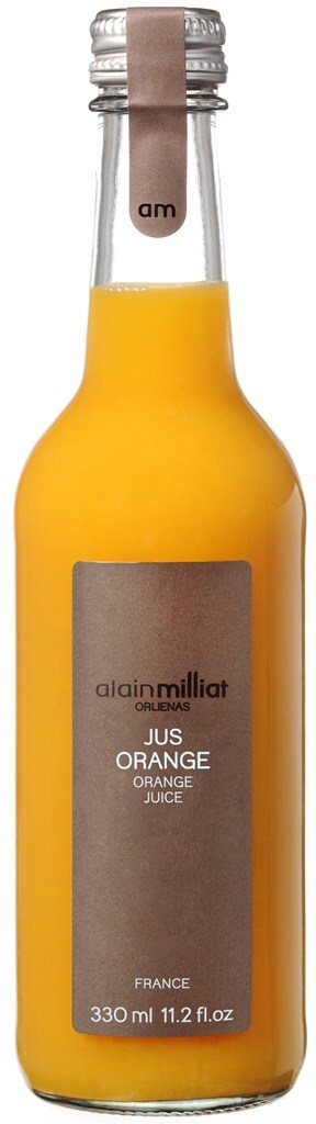 Alain Milliat, Jus Orange — ароматный, сладкий апельсиновый сок с горчинкой. Его процесс производства состоит из нескольких этапов: промывки и измельчения фруктов, прессования без нагрева, фильтрации и пастеризации при температуре +85 °С. Технология производства исключает применение консервантов и красителей.
