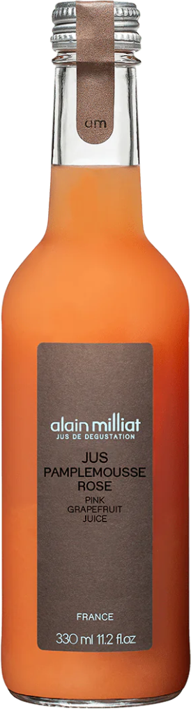 Alain Milliat, Jus Pink Grapefruit — натуральный сок розового грейпфрута, обладающий ярким, насыщенным вкусом с приятной горчинкой и цитрусовыми тонами, в частности, грейпфрута. В его производстве используются только натуральные ингредиенты, он не содержит красителей или ароматизаторов. Сок богат витамином C, он отлично освежает знойным летним днем.