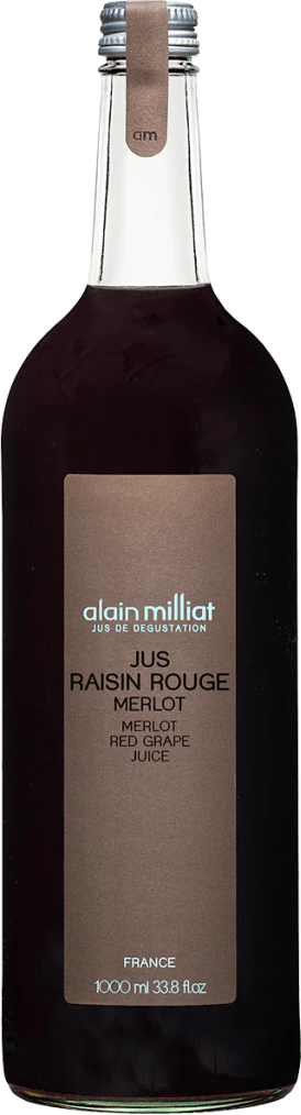 Alain Milliat, Jus de Raisin Rouge Merlot — ароматный сладкий сок из красного винограда сорта Мерло. Его процесс производства состоит из нескольких этапов: промывки и измельчения ягод, прессования без нагрева, фильтрации и пастеризации при температуре +85°С. Технология производства исключает применение консервантов и красителей.
