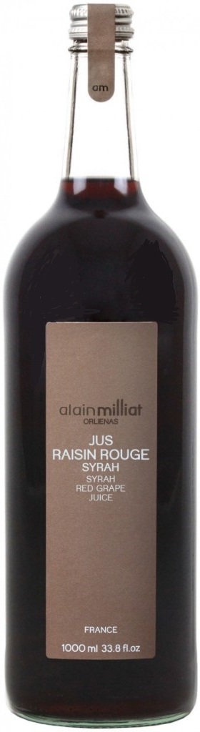 Alain Milliat, Jus de Raisin Rouge Syrah — ароматный сладкий сок из красного винограда сорта Сира. Его процесс производства состоит из нескольких этапов: промывки и измельчения ягод, прессования без нагрева, фильтрации и пастеризации при температуре +85°С. Технология производства исключает применение консервантов и красителей.