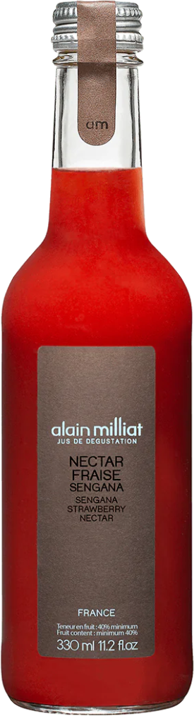 Alain Milliat, Nectar de Fraise — сладкий, невероятно вкусный и ароматный нектар из клубники, который получают в процессе извлечения фруктовой мякоти и разбавления ее водой. Также в нектар для улучшения вкусовых и цветовых характеристик добавляют сахар, лимонный сок и аскорбиновую кислоту. Напиток в процессе производства подвергают пастеризации и разливают горячим способом. Клубнику для нектара выращивают в Долине Роны. Для производства нектара используют быстрозамороженные ягоды.