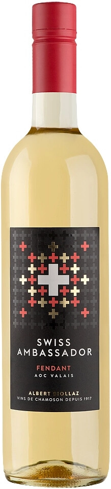 Albert Biollaz, Swiss Ambassador Fendant, Valais — свежее и легкое белое сухое вино из винограда сорта Шасла, который выращивается на террасных виноградниках в муниципалитете Шамозон в самом сердце Вале на высоте от 450 до 750 метров над уровнем моря. Самые высокорасположенные виноградники растут на ледниковых отложениях довольно хаотичной структуры — с песком, гравием и галькой, примесью глин, которая составляет 10% всей поверхности. Остальная часть виноградников раскинулась на глинисто-сланцевых почвах ниже по склону и на равнине. Крутизна склонов, хотя и значительно усложняет уход за виноградниками и сбор урожая, дает значительные преимущества в виде отличного дренажа и более сильного воздействия солнечного света. После сбора урожая, который осуществляется в момент оптимальной спелости ягод, виноград подвергается традиционной винификации при контролируемой температуре. Вино рекомендуется подавать в качестве аперитива, а также в сочетании с блюдами из рыбы и морепродуктов, сырами.