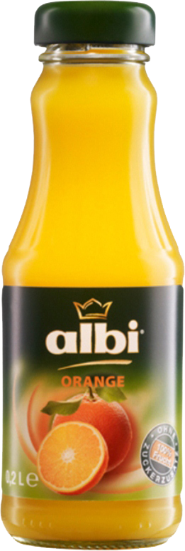 Albi, Orange — натуральный апельсиновый сок "премиум" класса, который обладает уникальным, свежим вкусом благодаря специально отобранным спелым апельсинам и их тщательной обработке. Сок богат природным витамином С. Он производится в соответствии со строгими требованиями законодательства, без добавления сахара, красителей и консервантов.