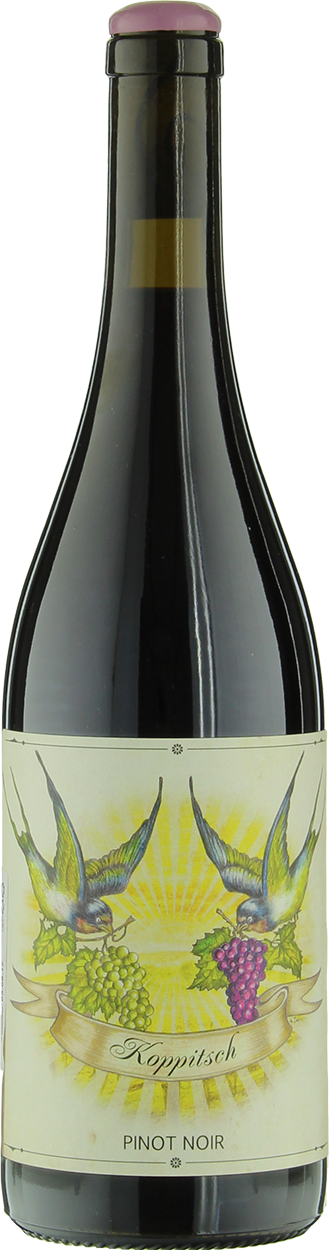 Alexander Koppitsch, Pinot Noir — натуральное моносортовое красное вино, входящее в серию "Single Vineyard". На этикетке вина изображены ласточки, которые в Австрии являются символом настоящей удачи. Ретро-стиль дизайна напоминает об этикетках Бургенланда 1950-х годов. Виноград сорта Пино Нуар для изготовления вина выращивается на биодинамическом винограднике "Нейберг", считающемся одним из лучших в Бургенланде. Он имеет известковую почву, благодаря которой вина получают четкую структуру, глубину, характер, очаровательные минеральные оттенки и соблазнительные фруктовые ноты. Перед розливом по бутылкам вино не фильтруется, сера не добавляется.
