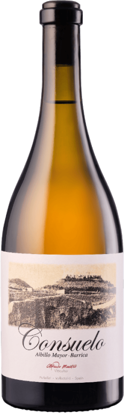 Alfredo Maestro, Consuelo — яркое, насыщенное, экзотическое оранжевое натуральное вино, изготовленное из винограда сорта Альбильо, который выращивается в регионе Кастилья и Леон. Урожай собирается с разных участков со старых лоз, высаженных с 1891 по 1910 год. Виноградники расположены на высоте 770-1000 метров над уровнем моря на известково-глинистых почвах. Урожай вручную снимается с лоз в середине сентября, отделяется от гребней и измельчаются. Затем следует 7-дневная мацерация в контакте с кожицей. Ферментация на осадке проходит в 500-литровых бочках из французского дуба. Затем вино выдерживается 1 год в бочке из французского дуба объемом в 500 литров и разливается в бутылки без фильтрации и без добавления сульфитов. "Консуэло" производится в очень маленьком количестве — не более 600 бутылок в год.
