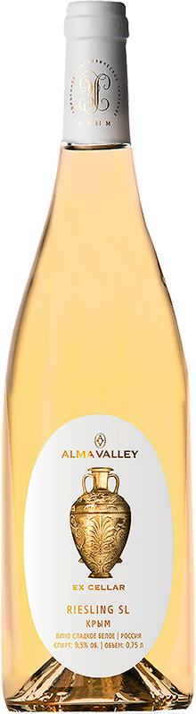 Alma Valley, "Ex Cellar" Riesling SL — белое сладкое вино, созданное из винограда сорта Рислинг Рейнский, который произрастает на виноградниках хозяйства в Альминской долине. По окончании сбора урожая ягоды подвергаются традиционной винификации, проходящей в стальных резервуарах с применением технологии "холодной ферментации".