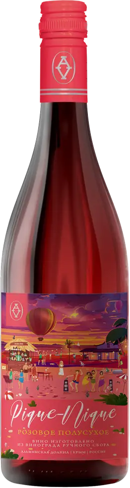 Розовое полусухое вино Alma Valley, Pique-Nique, Rose изготавливается из винограда сортов Каберне Совиньон, Саперави и Сира, выращиваемого в Альминской долине в Западном Крыму. Холодная мацерация до 2 суток, ферментация в емкостях из нержавеющей стали при контролируемой температуре. Остановка ферментации холодом. Это вино — воплощение хитов Боба Марли о солнце и радостях жизни. Сотканное из нежных нот нектарина, слив, черной смородины и фиалки, оно призывает забыть о заботах и, наконец, отдохнуть.