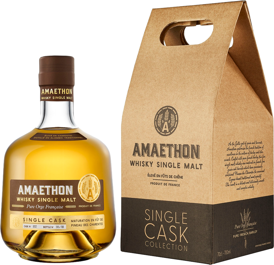 Amaethon, Single Cask — французский односолодовый виски, названный в честь Амаэтона, бога земледелия в кельтской мифологии. Во Франции выращивали и перегоняли ячмень со времен галлов, создавая настоящую французскую традицию производства виски. Следуя этой традиции, "Amaethon" производится из ячменя уникального качества, выращенного во Франции. Виски выдерживается в бочке из-под знаменитого крепленого вина Пино де Шарант и бутилируется при бочковой крепости 46,5%. Каждая бутылка пронумерована. Виски лучше всего подавать в чистом виде или со льдом, его можно использовать для приготовления коктейлей.