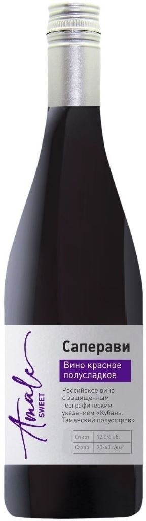 Амале, Саперави — нежное красное полусладкое вино с защищенным географическим указанием "Кубань. Таманский полуостров". В производстве используется виноград сорта Саперави, который выращивается на собственных виноградниках компании. Производство осуществляется на современном итальянском оборудовании. Традиционные методы винификации позволяют создать качественное вино по доступной цене, сохраняя при этом сортовой характер винограда и уникальную типичность терруара. Небольшое количество остаточного сахара делает вкус вина более мягким, нежным и питким.