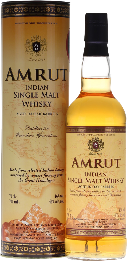 Amrut, Indian Single Malt — односолодовый индийский виски, который не подвергался холодной фильтрации. Крепость напитка составляет 46%. В изготовлении виски использовался отборный ячмень, выращенный у подножия Гималаев. Дистилляция небольшими партиями позволила сохранить натуральный аромат. "Амрут" выдерживали в баррелях из американского дуба и бочках из-под бурбона. Выдержка проходила в уникальных условиях тропического климата, на высоте 3 тысяч метров над уровнем моря, в Бангалор — индийском городе-саде. В 2008 году на конкурсе "Malt Maniacs Awards" виски был удостоен бронзовой медали.