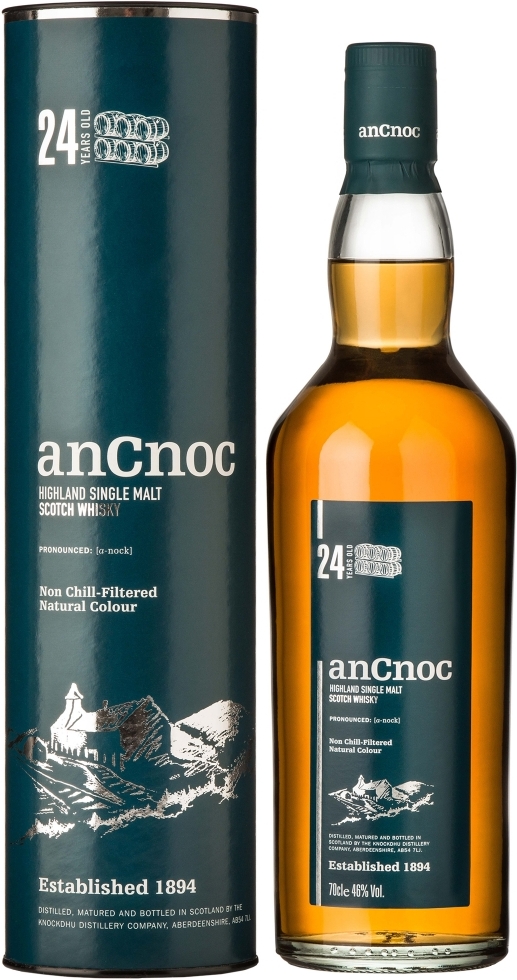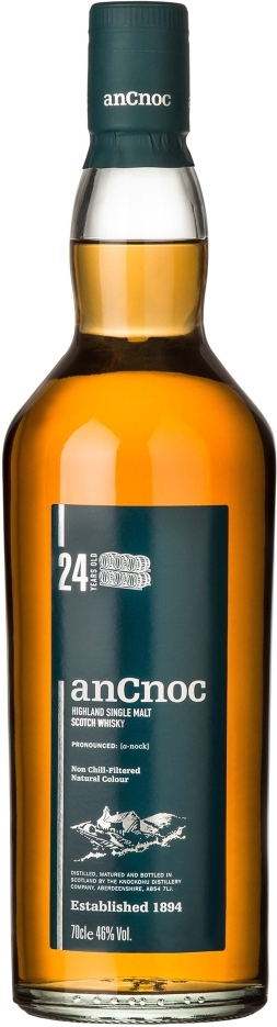 Односолодовый виски "An Cnoc" 24 Years Old создан в интересном, современном стиле. Гордое имя "Аn Cnoc", что на кельтском языке значит попросту "гора", обязывает каждую каплю этого напитка быть достойным богатой традиции Хайленда. Виски был бутилирован без применения холодной фильтрации и красителей и поэтому может становиться слегка мутным при добавлении воды или будучи охлажденным до низкой температуры. Такая реакция естественна для всех виски, не подвергавшихся холодной фильтрации.