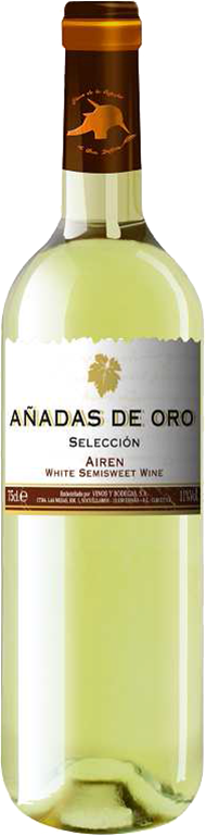 Аньядас Де Оро Айрен Семисвит (Anadas De Oro Airen Blanco Semidulce) - Белое полусладкое. Айрен– самый распространенный в Испании сорт винограда и первый в мире по объемам производства сортовых белых вин. Данный сорт, прекрасно приспособлен к сухому жаркому климату, чрезвычайно устойчив к заболеваниям и дает хорошую урожайность.