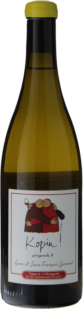 Anne et Jean-Francois Ganevat, Kopines! — зрелое, глубокое, чистое белое вино, которое легко пьется, но при этом обладает невероятной сложностью. Это вино — результат сотрудничества c биодинамическими производителями из других регионов. Так, в купаж вина входит Шардоне с собственных виноградников в Жюре, Шардоне из Бургундии и Алиготе. После ферментации с натуральными дрожжевыми культурами вино выдерживается в течение года в дубовых фудрах. Перед розливом вино не очищается и не фильтруется, сера не добавляется. Этикетку "Копин!" нарисовал известный дизайнер Мишель Толмер.