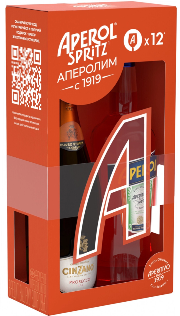 Набор, состоящий из одной бутылки аперитива "Aperol" объемом 700 мл и игристого вина "Cinzano" Spumante Prosecco объемом 750 мл, станет отличным презентом близкому человеку, сотруднику или другу, а также это идеальный готовый коктейльный набор. Просто смешайте "Апероль" с Просекко и получите восхитительный Коктейль "Aperol Spritz"!