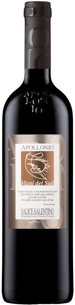 Mani del Sud, Rosso, Salice Salentino — богатое, выразительное, ароматное вино из автохтонных сортов винограда: Негроамаро и Мальвазия Нера, выращиваемых в Саличе Салентино. Исторически в Саленто сорта выращиваются вместе, с чередованием восьми лоз Негроамаро с двумя лозами Мальвазия Нера. Последний, благодаря отличной мягкости и ароматности, наилучшим образом уравновешивает угловатый характер Негроамаро. ы двух других сортов винограда. Урожай собирают вручную. Традиционная ферментация при контролируемой температуре (27-28 °С) осуществляется в больших чанах из славонского дуба с частым перекачиванием сусла. Длительный тридцатидневный контакт сусла с виноградной кожицей позволяет извлечь максимум полифенолов и облегчает начало последующего яблочно-молочного брожения в барриках. Затем вино выдерживается 6 месяцев в бочках из французского дуба средней обжарки, 6 месяцев в больших славонских бочках на 3000-5500 литров и 6 месяцев в бутылках.