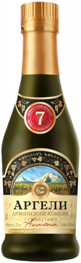 Аргели, 7-летний — армянский коньяк, который производится по классической технологии из коньячных дистиллятов, изготовленных из винограда сортов Воскеат, Кангун и Ркацители. Минимальный срок выдержки дистиллятов в дубовых бочках составляет 7 лет. Созревание в дубовых бочках формирует благородный и гармоничный профиль напитка. Коньяк обладает мягким вкусом и приятным ароматом, он является отличным дижестивом, также его можно добавить в кофе, подать с сигарой или использовать для приготовления коктейлей.