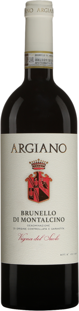 Argiano, Brunello di Montalcino "Vigna del Suolo" — фантастическое красное вино, наполненное классом и утонченностью и сочетающее бургундскую чувственность с чистотой и интенсивностью. Первый релиз этого вина состоялся в 2000 году под названием "Suolo". Для изготовления вина используют виноград сорта Санджовезе, собранный только в лучшие урожайные годы с самых старых лоз хозяйства, возраст которых составляет 65 лет. Виноградник "Суоло" расположен на высоте от 280 до 310 метров над уровнем моря, где преобладают мергелевые почвы с высоким содержанием известняка. На винограднике и в погребе придерживаются органических практик с минимальным вмешательством в естественный процесс. В 2018 году урожай был собран в первые 2 недели октября. Перед ферментацией проводится криомацерация в течение 4 дней для лучшего извлечения цвета и аромата. Ферментация и мацерация в цементных чанах длится 3 недели, затем следует яблочно-молочное брожение в бетонных резервуарах. Выдерживается вино 12 месяцев в яйцевидных бочках из французского дуба емкостью 12 гл и 12 месяцев в бочках из славонского дуба. Розлив по бутылкам произошел в апреле и мае во время наиболее благоприятной фазы Луны.