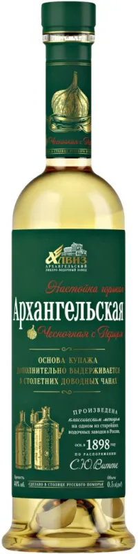 Архангельская, Чесночная с Перцем содержит в своем составе природные растительные компоненты, такие как чеснок, черный и душистый перец, а также кориандр. Внутри каждой бутылки есть настоящий зубок чеснока, придающий напитку яркий вкус и аромат с характерными оттенками.