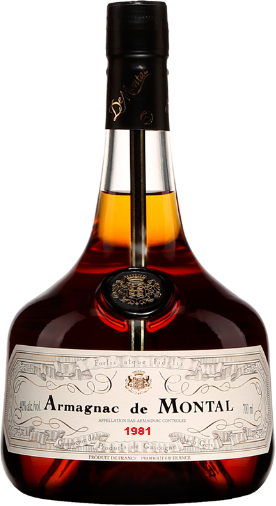 Armagnac de Montal, 1981 — винтажный арманьяк, выдержанный 33 года в дубовой бочке. Мягкий и влажный климат региона Ба-Арманьяк способствует своевременному созреванию винограда, а богатые кремнием и глиной почвы дают арманьякам легкость и ароматность тонких фруктовых оттенков. Сбор урожая производится ночью, виноград поступает на винодельню при температуре не выше 15 °С, максимально сохраняя свой потенциал. Для того, чтобы сохранить богатый аромат винограда, дистилляцию вина для арманьяка де Монталь производят рано — с ноября по Рождество, хотя официально разрешено завершать дистилляцию 31 января следующего года. Сама дистилляция производится с использованием трех медных перегонных колонн. В них проходит непрерывная дистилляция, которая сохраняет характеристики каждого сорта и дает очень насыщенные о-де-ви, подходящие для долгой выдержки. Старение арманьяков Монталь проходит в древних погребах Шато де Рьетор. После перегонки арманьяк помещается в огромные 400-литровые бочки, которые были специально изготовлены из белого дуба, растущего в лесах Монлезон и Ле Фреш. В процессе выдержки арманьяк вбирает в себя древесные танины, а также аромат и цвет дуба, приобретает интенсивный, насыщенный букет и мягкий, маслянистый сложный вкус.