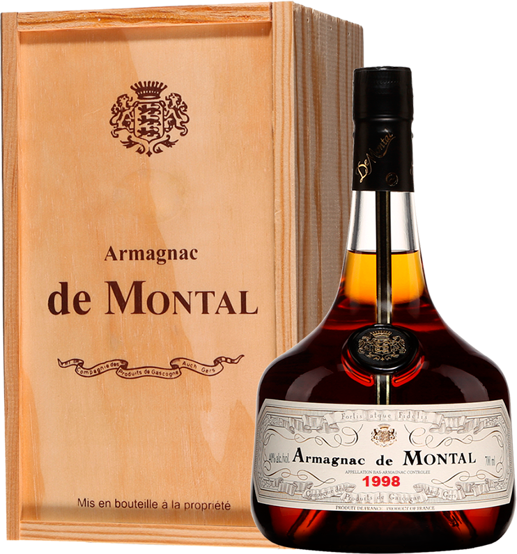 Armagnac de Montal, 1998 — винтажный арманьяк, выдержанный 16 лет в дубовой бочке. Мягкий и влажный климат региона Ба-Арманьяк способствует своевременному созреванию винограда, а богатые кремнием и глиной почвы дают арманьякам легкость и ароматность тонких фруктовых оттенков. Сбор урожая производится ночью, виноград поступает на винодельню при температуре не выше 15 °С, максимально сохраняя свой потенциал. Для того, чтобы сохранить богатый аромат винограда, дистилляцию вина для арманьяка де Монталь производят рано — с ноября по Рождество, хотя официально разрешено завершать дистилляцию 31 января следующего года. Сама дистилляция производится с использованием трех медных перегонных колонн. В них проходит непрерывная дистилляция, которая сохраняет характеристики каждого сорта и дает очень насыщенные о-де-ви, подходящие для долгой выдержки. Старение арманьяков Монталь проходит в древних погребах Шато де Рьетор. После перегонки арманьяк помещается в огромные 400-литровые бочки, которые были специально изготовлены из белого дуба, растущего в лесах Монлезон и Ле Фреш. В процессе выдержки арманьяк вбирает в себя древесные танины, а также аромат и цвет дуба, приобретает интенсивный, насыщенный букет и мягкий, маслянистый сложный вкус.