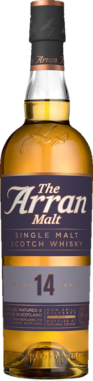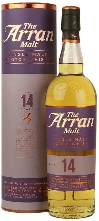 Арран 14-летней выдержки, являющийся визитной карточкой компании "Айл оф Арран Дистилери", — свежий шотландский односолодовый виски со сладковатым фруктовым ароматом, выдержанный в бочках из-под бурбона и хереса (75%). Подарочная упаковка, выполненная в виде тубы, и фирменный стакан для виски делает "Arran" достойным подарком по любому поводу.