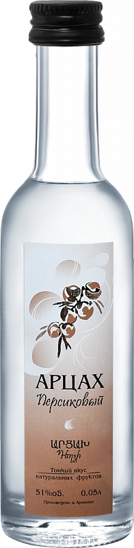 Водка "Арцах Персиковый"— новинка в портфеле компании "Арцах Бренди Компани"— изготавливается из самых спелых плодов персика с нежной мякотью. Сбор их производиться только вручную, после чего персики сортируют и отделяют мякоть от косточек. После окончания ферментации, которая длится несколько недель, перебродивший сок подвергают двойной дистилляции. Перегонка осуществляется в небольших медных кубах, похожих формой на коньячные, за счет чего достигается высокое качество и ароматичность дистиллята. Высококачественный спирт купажируют с мягкой очищенной водой, а затем очищают с помощью мембранных фильтров.