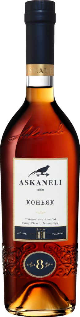 Асканели, 8-летний — коньяк выдержанный высшего качества (КВВК), изготовленный из коньячных спиртов из лучших винодельческих регионов Грузии, возраст которых составляет как минимум 8 лет. Этот элегантный и приятный коньяк подарит наслаждение в качестве дижестива, в "компании" с фруктами или сигарой.