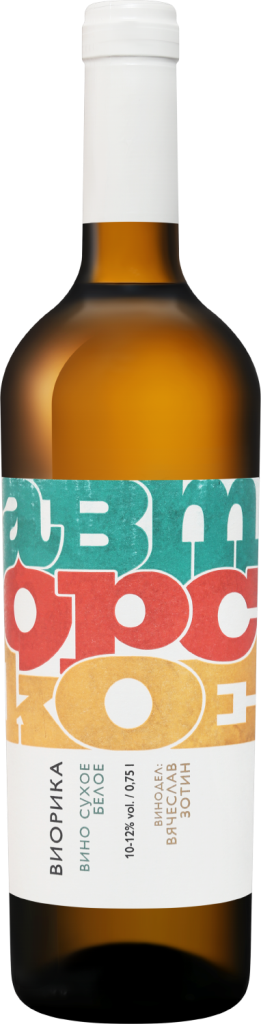 Авторское, Виорика — легкое, свежее белое сухое вино с сочными фруктовыми нотами во вкусе и аромате. Виноград сорта Виорика для изготовления вина выращивается в Краснодарском крае, в защищенном географическом указании Кубань, что гарантирует качество винограда и строго контролируемые правила изготовления вина. Этот сорт был получен в 1969 году в результате скрещивания сортов Зейбель 13-666 и Алеатико. Виорика — виноград среднепозднего срока созревания, из которого, как правило, изготавливаются белые сухие вина. ""Авторское" Виорика рекомендуется подавать в качестве аперитива, к легким закускам, зеленым салатам, блюдам из мяса птицы.