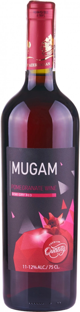 Az-Granata, Mugam, Pomegranate Semi-Dry — яркое гранатовое полусухое вино с живой кислинкой и богатым ароматом. Для изготовления вина используются спелые плоды граната, которые выращиваются органическими методами в собственных садах компании. Исследования показали, что гранат обладает мощными противовоспалительными и иммуностимулирующими свойствами. Специальная технология производства, используемая компанией Аз-Граната, позволяет сохранить все полезные вещества, которые содержатся в этом плоде, поэтому гранатовое вино "Мугам" по праву может считаться целебным. Плоды собираются по достижении оптимальной зрелости. После прессования плодовое сусло ферментируют при контролируемой температуре в резервуарах из нержавеющей стали. Благодаря особой технологической обработке достигается большая прозрачность готового вина.