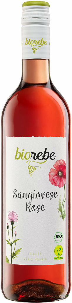 Розовое полусухое вино "BIOrebe" Sangiovese Rose изготовлено из винограда сорта Санджовезе, выращенного в регионе Апулия, при возделывании которого не используются пестициды и синтетические химические удобрения. Многие этапы производства проводят вручную, чтобы сохранить аутентичный характер напитка.