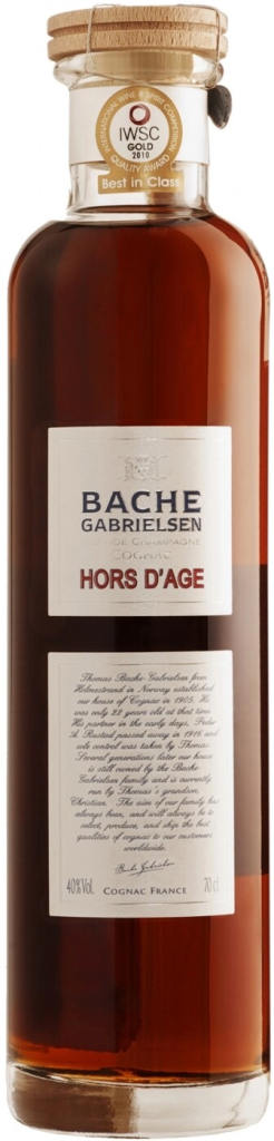 Hors d’Age — уникальный напиток самого лучшего терруара региона Коньяк — Гранд Шампань. Он воплотил в себе все многообразие оттенков и изящность сорта Уни Блан и дополнился приятной округлостью благодаря небольшой добавке сорта Фоль Бланш. Самые старые дистилляты, входящие в состав Ор д'Аж, датируются 1917 годом, а самые младшие — 1960-ми годами. Коньяку понадобилось пробыть 50 лет в лимузенских дубовых бочках, чтобы дойти до нас и предстать во всем своем великолепии. К заключенному в оригинальную бутылку, укупоренную герметичной пробковой крышкой, и деревянный футляр коньяку прилагается сопроводительное письмо от руководства Bache-Gabrielsen.