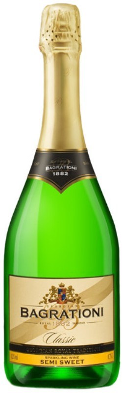 Bagrationi, Classic Semi Sweet — традиционное грузинское игристое вино, изготавливаемое из классического купажа винограда сортов Ркацители, Чинури, Мцване и Цицка. Виноград выращивается в популярных винодельческих регионах — Кахетия, Картли и Имеретия. Вино производится по традиционной технологии "Шарма", предполагающей проведение вторичной ферментации в огромных герметичных стальных резервуарах и розлив в бутылки под давлением. Полусладкое игристое вино обладает интенсивным вкусом с тонами яблока и груши, а также утонченным цветочно-фруктовым ароматом.