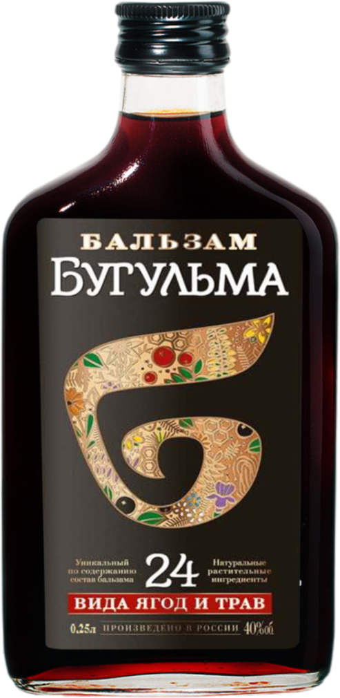 Бугульма — бальзам с пряным, тонким ароматом и удивительно мягким вкусом. В состав бальзама вошли 24 компонента, среди которых ароматные настои трав и кореньев, душистые эфирные масла и натуральный мед, морсы и соки из спелых ягод и фруктов. Все ингредиенты абсолютно натуральные и экологически чистые. Употребление бальзама в умеренных количествах способствует укреплению нервной системы, помогает при лечении простудных и желудочно-кишечных заболеваний. Бальзам можно добавить в чай или кофе, чтобы придать любимому напитку новые яркие нотки, а также изготавливать с ним различные коктейли.